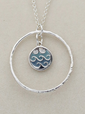 Ref 01 // Tiny Waves £45 Enamelled wave charm suspended in handmade textured silver circle. Choice of chain available.