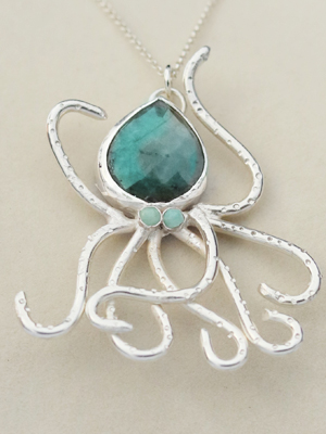 Ref 04 // Ramone £95 Beautifully colured quartz, turquoise glass eyes & solid silver legs. Choice of chain available.
