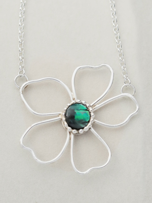 Ref 05 // £55 Delicate daisy pendant with deep coloured abalone shell centre. This one includes chain!
