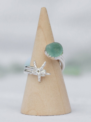SOLD // Sea Bubble £65 Bubble mounted seaglass, twin silver band with starfish detail. *SOLD*